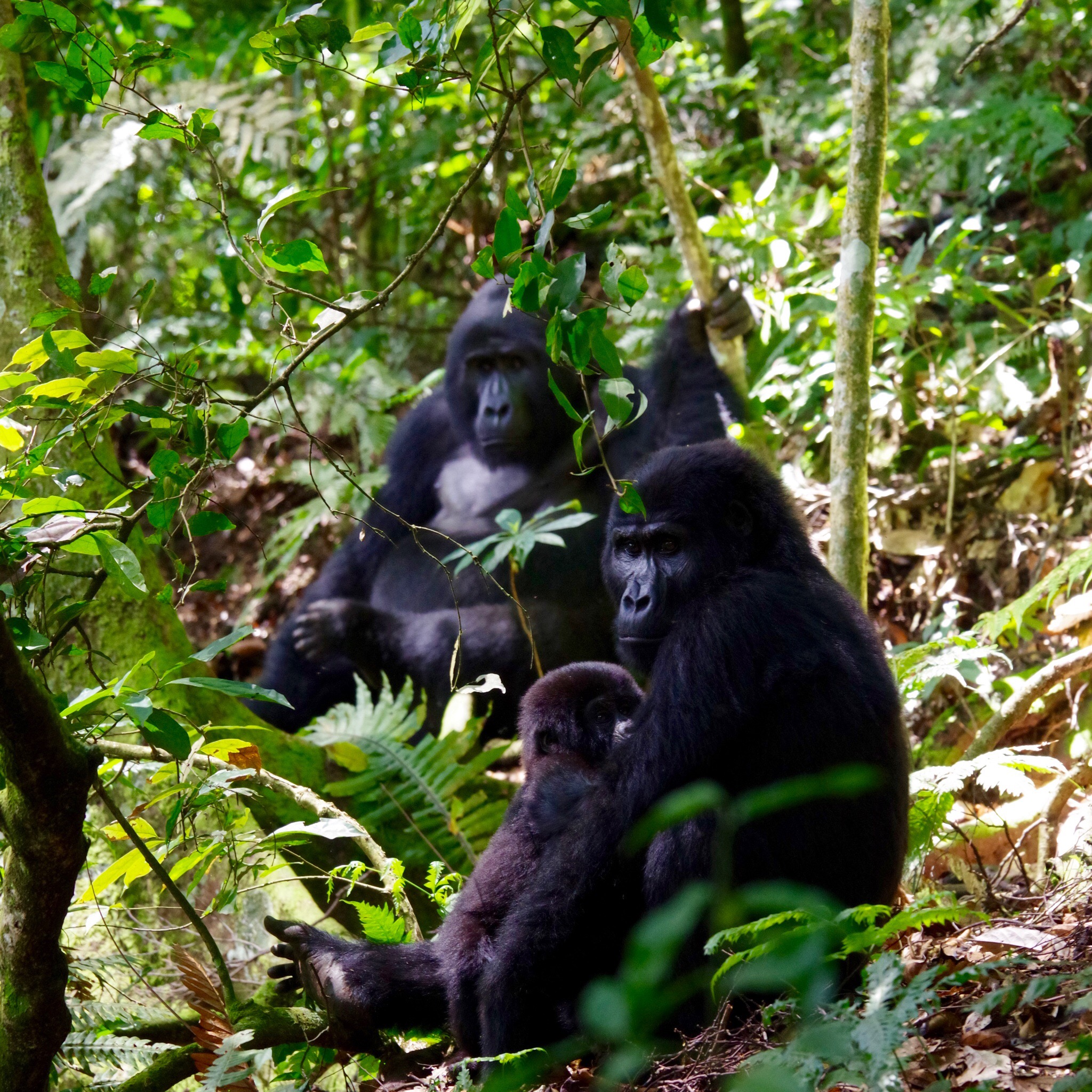 Thursday morning, we got a call as we were walking down to breakfast that two permits for Gorilla Tracking had come available. When we were organizing to come to Bwindi the thought of gorillas had not crossed our minds. It was only on arriving here that we were alerted to the possibility and it became one of those “well we are here so it seems silly not to take the opportunity” things. Lori was booked to teach that day so couldn’t go. They are strict in enforcing the rule that children under 16 can’t go so Thea couldn’t go either (despite the fact that she is taller than Lori and Rachelle and has way better endurance than the others in the group we ended up with). So Rachelle and I raced back, quickly changed, grabbed some water (but didn’t have enough time to get breakfast or put together a lunch) and headed to the meeting point.