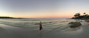 Those on FB will have seen that we have been already making the most of our location. We are only 15 mins from Binalong Bay which is the southern end of the Bay of Fires. Not named for the fire-like appearance of the lichen on the rocks but in fact for the fires on shore observed by Captain Furneax as he sailed past as part of Cook’s second voyage. The days have(mostly) been warm enough and long enough for us to head to the beach once I get back from work. We originally thought we would be staying near the clinic in Scamander however our accommodation is 15 mins north in St Helens. It does mean I have to “commute” each day but it does work out better for Lori and the girls as it is only a short walk across the bridge into St Helens which is a larger community and therefore has more going on. Well a bit more: you still can pretty much cross the main street on a Saturday night safely with your eyes closed.