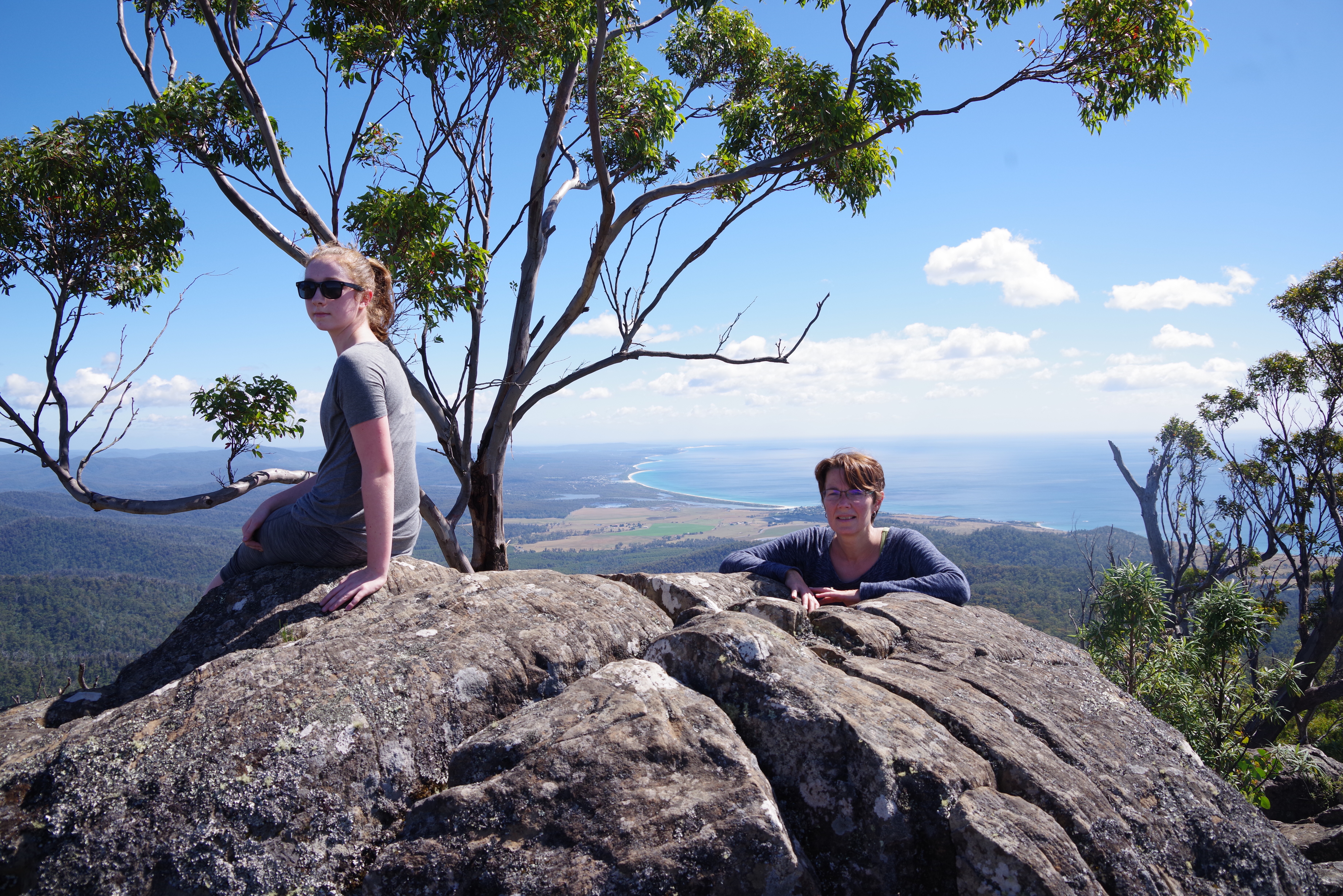 It has been great to be reminded of the friendliness of small town Australia. As we walked to the beach at McCrae one day, someone stopped to ask if we needed a ride and there have been many welcoming nods and greetings since arriving in Tasmania. The weather has been fractious – alternating hot and cold. The girls did brave the surf with their uncle Adam on a cold day. They were happier posing with the surf boards than paddling on them. Ironically we have all experienced more sunburns and and me and Thea more bug bites in Australia thus far than our whole three months in Africa.