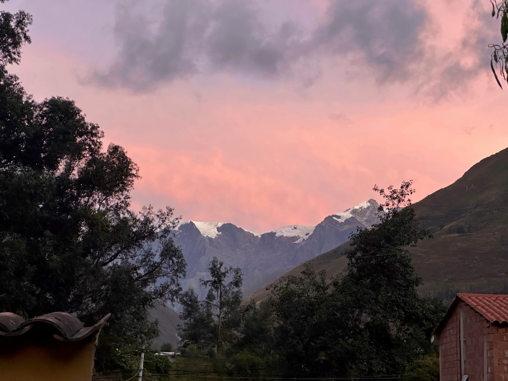 Camp was at the junction point of the two valleys in the lee of Huayanay with a view back down the valley to the ridge between Wacaywillca and Veronica.