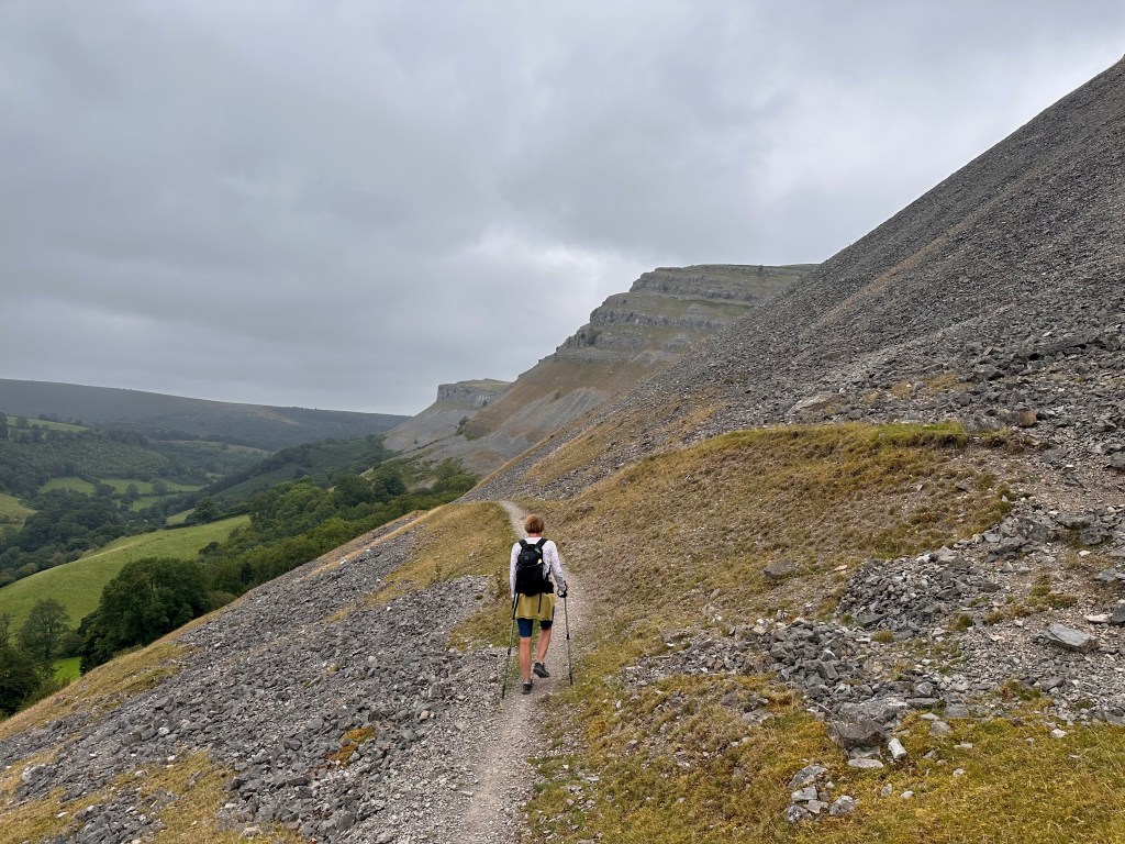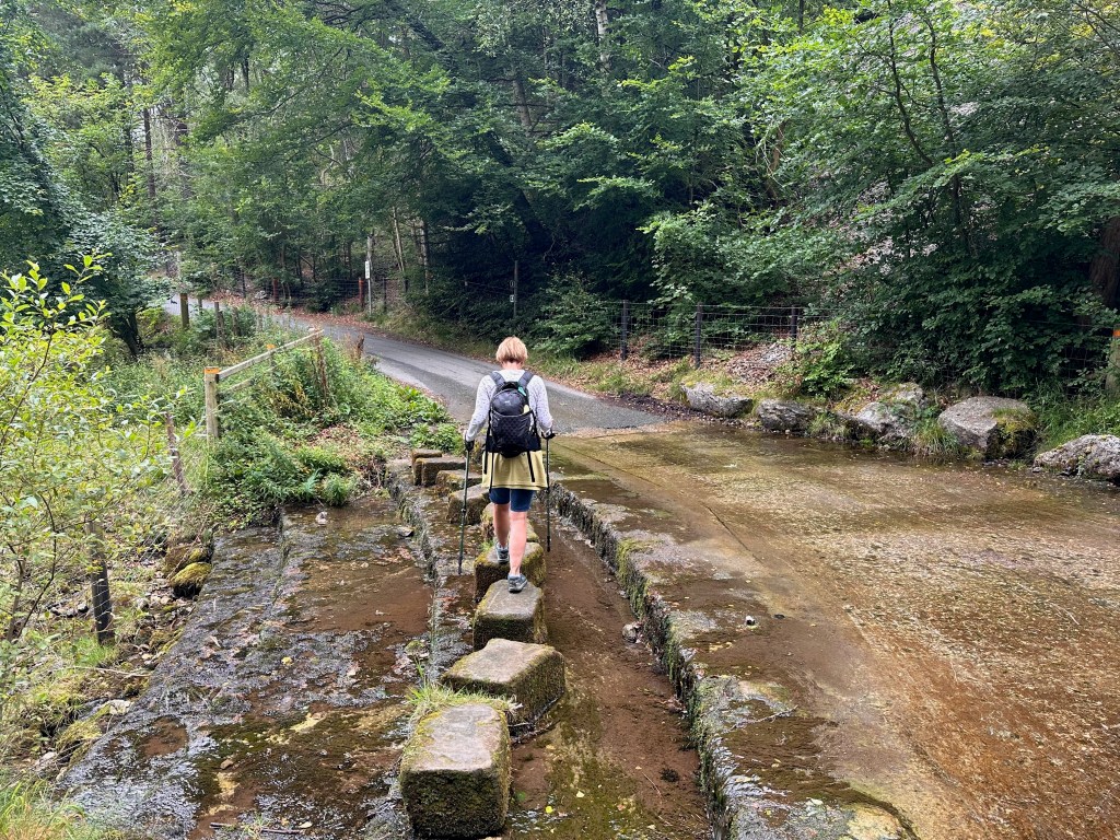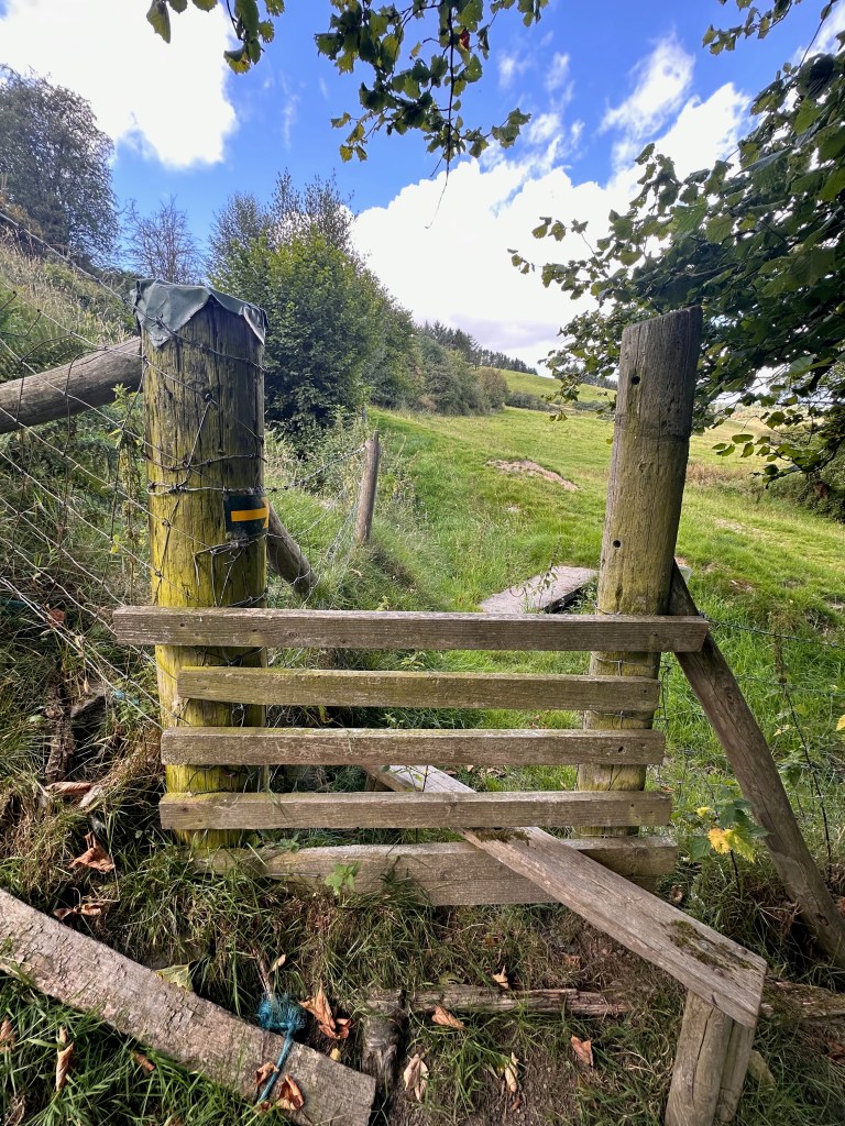 We descended the sleep slope down into Bwlch Penbarras (and marvelled at those hiking up the other way). Here, instead of calling for our ride, we chose to walk the extra back to the Druid Inn. After a pleasant forest walk it became a bit more adventurous and uncertain as we were really walking through a farmers yard and then we picked the wrong side of the fence to continue down to the next style and so had to scramble back over a barb wire fence.