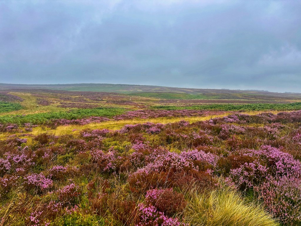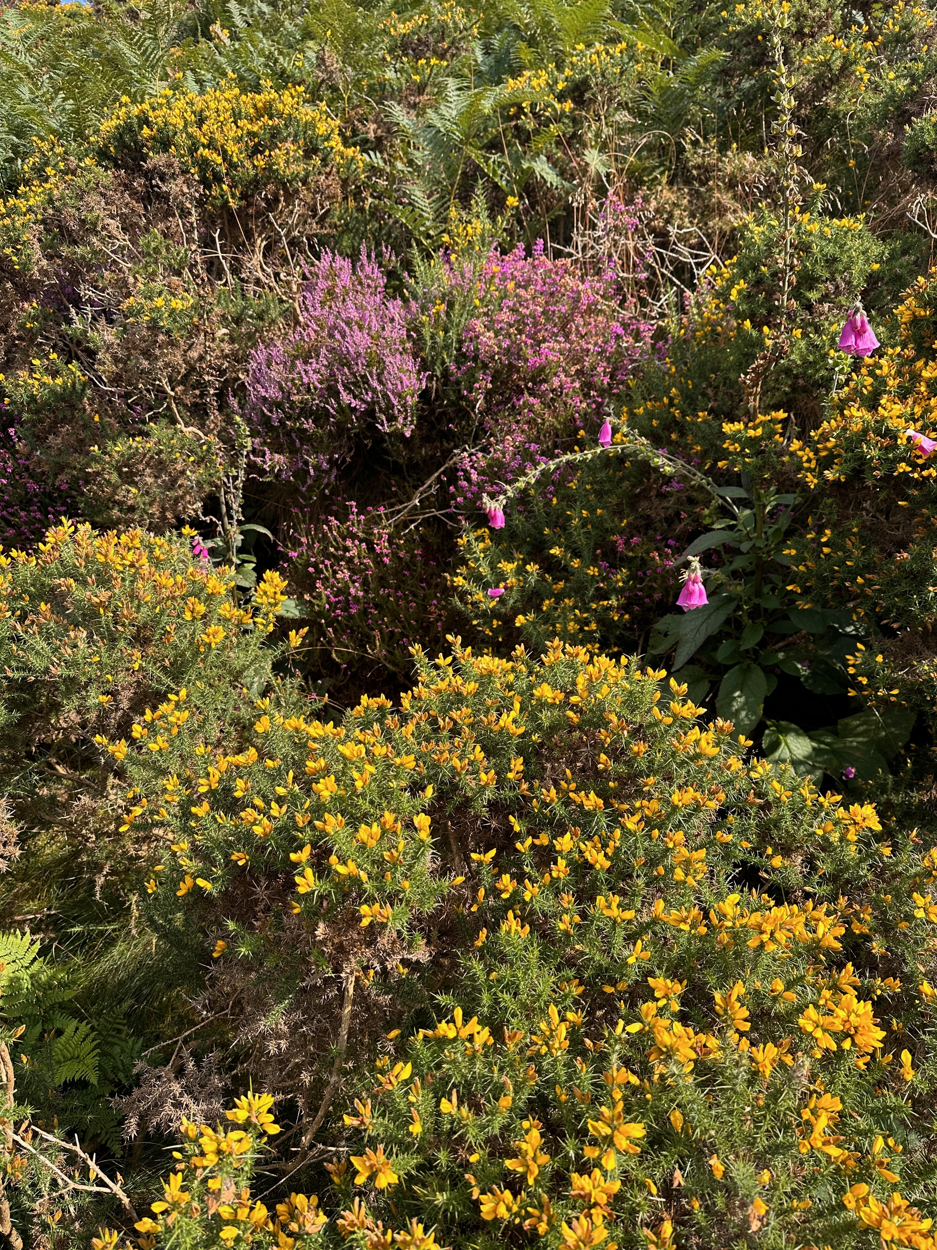 We gradually climbed up the western ridge of Moel Y Plas, Moel Llanfair and Noel Gyw which afforded us views down into the Vale of Clwyd and eventually, as we climbed higher, further afield to distant Snowdonia. As we climbed higher we returned to the fields adorned with heather and gorse, and erm, “caressed” by the wind.