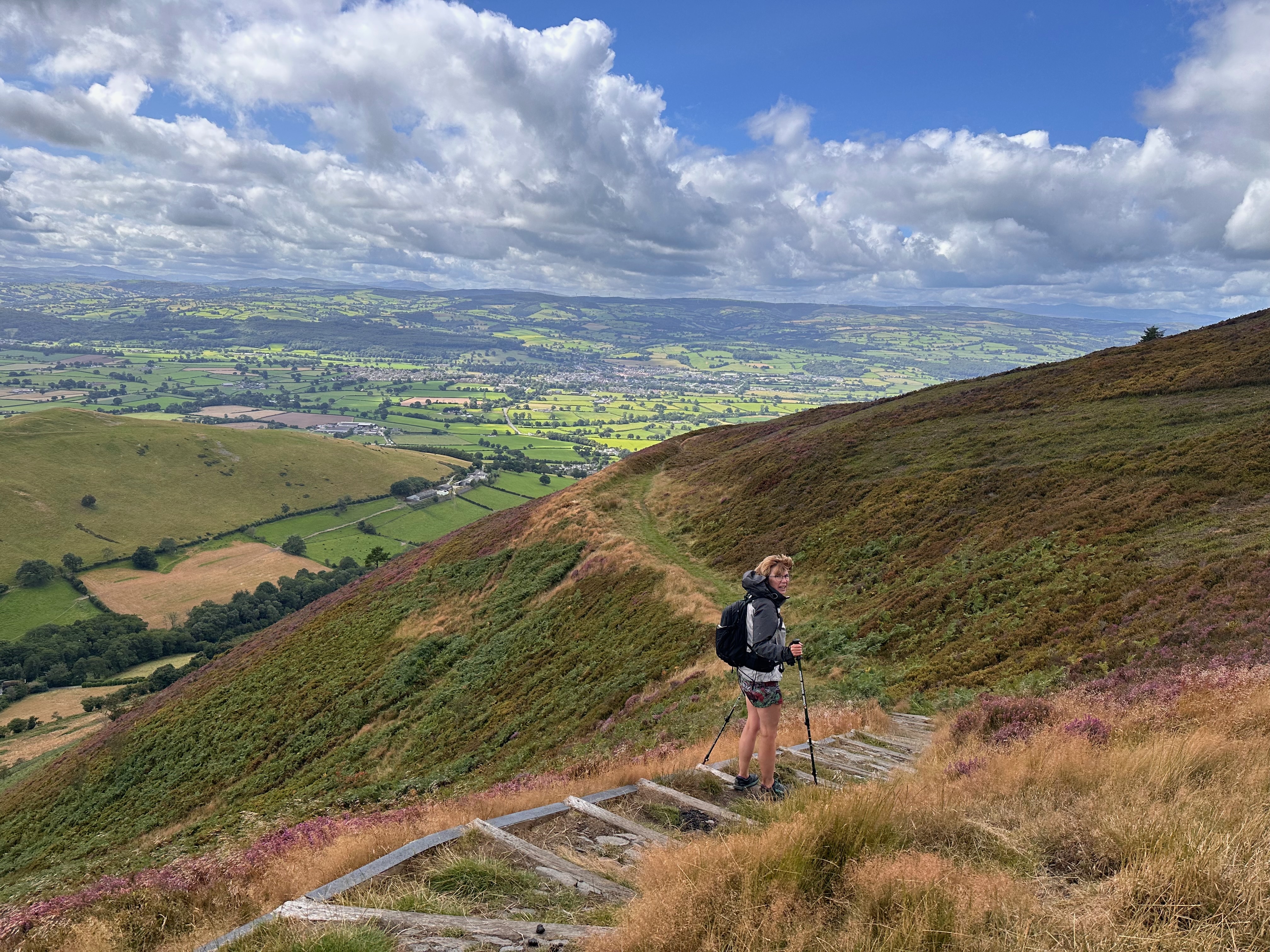 Rather than take the path around we chose to climb up and over the hill fort of Foel Fellni. This summit afforded us views of our path tomorrow over Moel Famau as well as views north east to The Wirral and Liverpool and even the Dee Estuary and our final destination.
