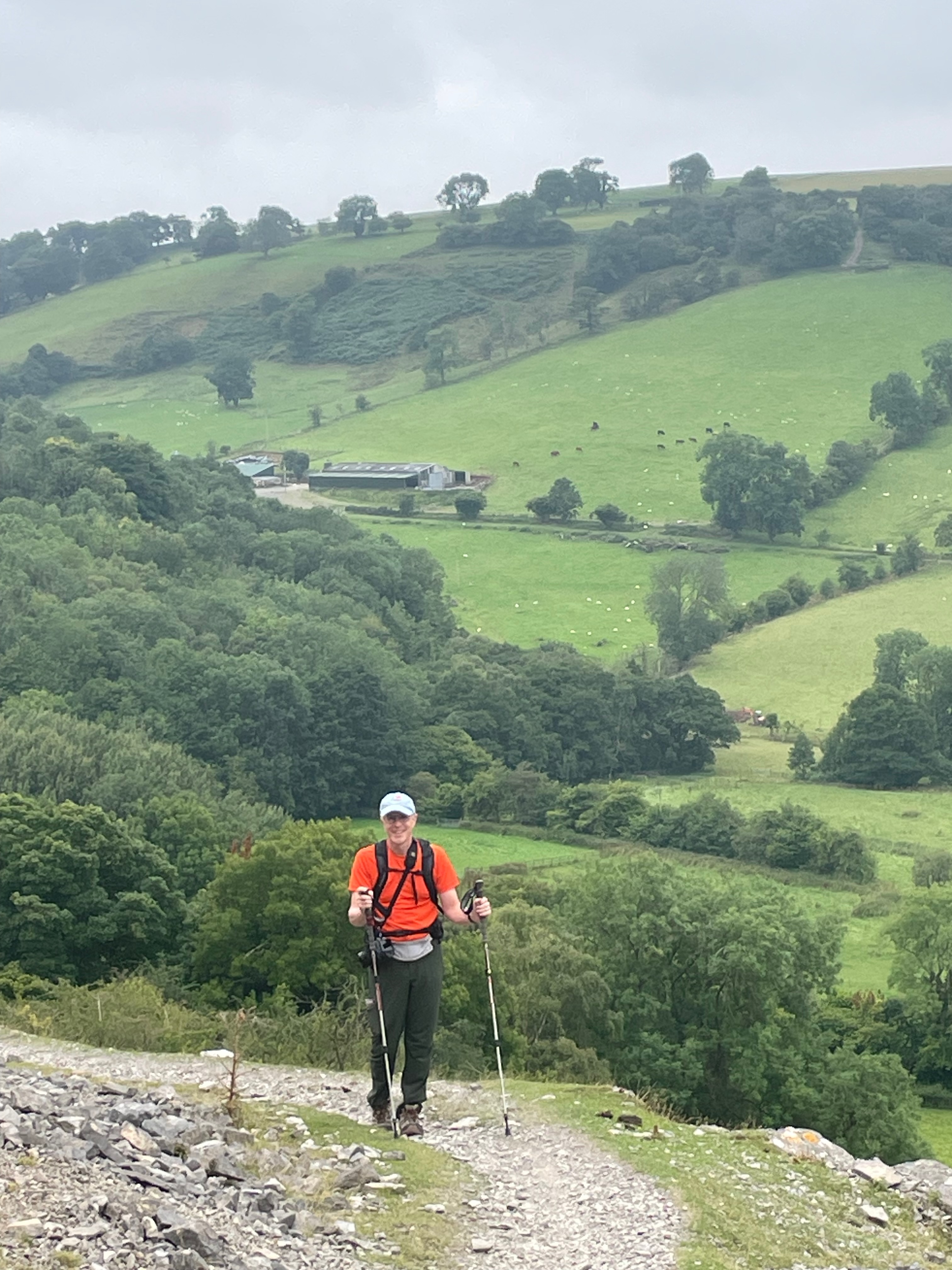 We started out walking through the customary (damp) farmer’s fields alongside and over brooks and streams (rather ostentatiously called the River Alyn). As we climbed back up towards the hills we could stop to look back and remark “Goodness did we really come that far”.