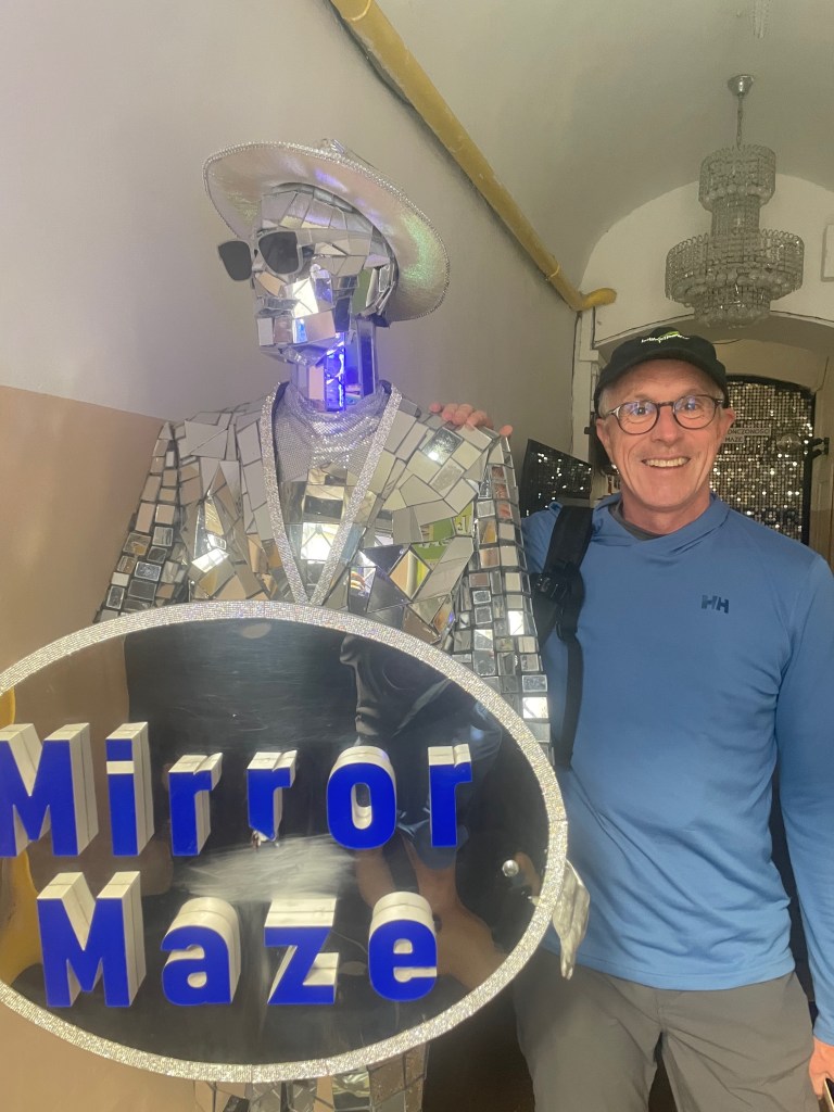 Also glad we got our booked train as it meant we got into Krakow at a reasonable time. We walked up into the square with the masses (!) of people. Far cry from 30 years ago when we had it almost to ourselves. We met our host who led us the quirky path to our AirBnB: past the mirror maze, tattoo parlour and 3D ride.